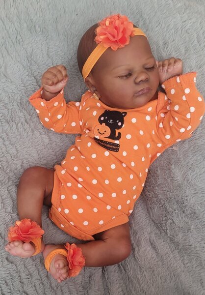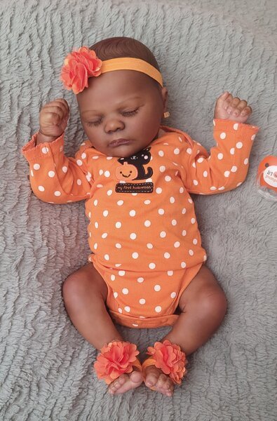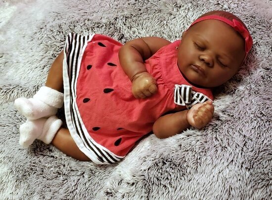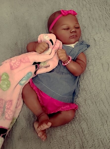 Created from the Realborn Jade kit. 19″ weighs 5lbs weighed with polyfil and glass beads. She has full limbs with a sift suede cuddly body. Painted using GHSP and sealed. She has beautiful painted hair. She has rooted eyelashes. She has her magnet in place for a pacifier she also has her ears pierced. She will come with a small box opening and her COA. Please feel free to contact me with any questions you may have. Thank you