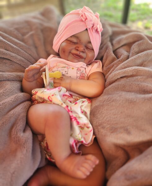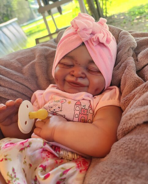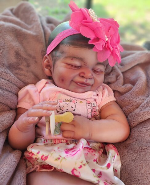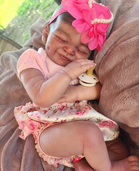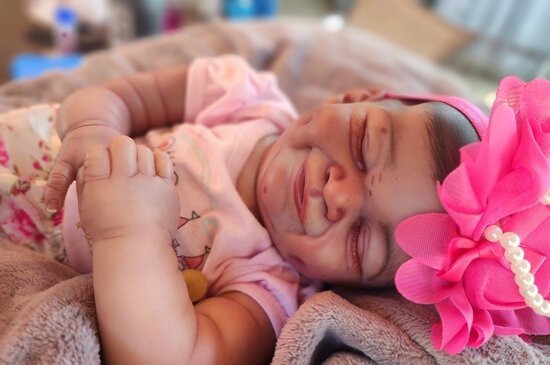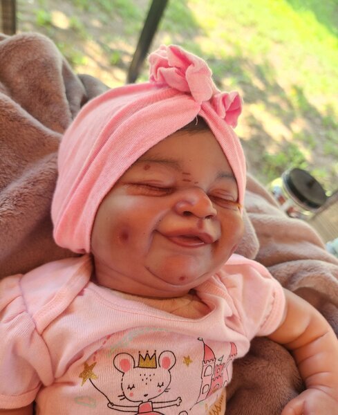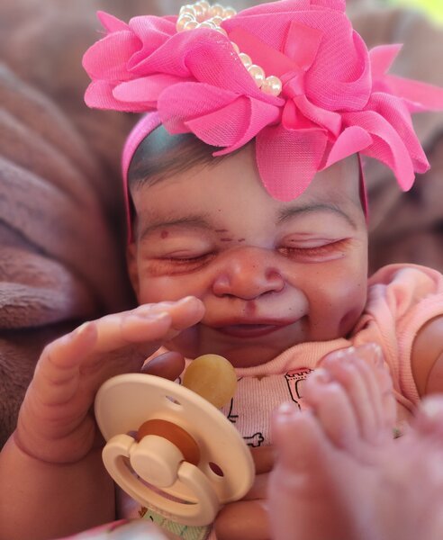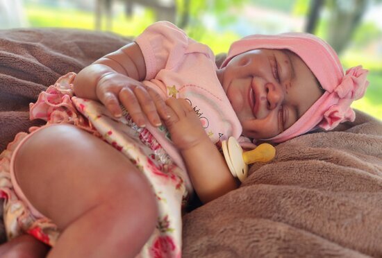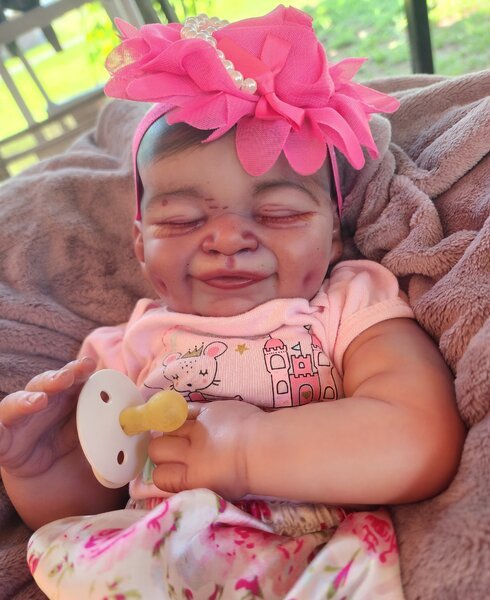 Cecilia by Bonnie Sieben is available for adoption at Mama Oso’s Reborn Nursery! I made her as a keeper for my personal collection but decided to places her for adoption due to not being able to give her the attention and love she deserves. My hope is she can find a new mommy that can because she is so lovely! Her little face just makes my heart happy! I call her my baby dopey because she reminds me of dopey from the seven dwarfs. 😄 She is #2/1800! She has been created using only high quality materials! She has been meticulously painted using Airdry Acrylic paints to create a Hispanic/Latino skin tone and small baby imperfections for realistic depth and dimension. Her details are as follows: