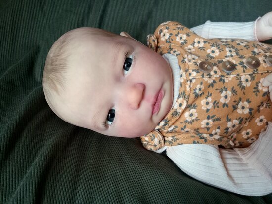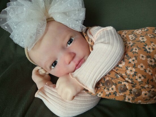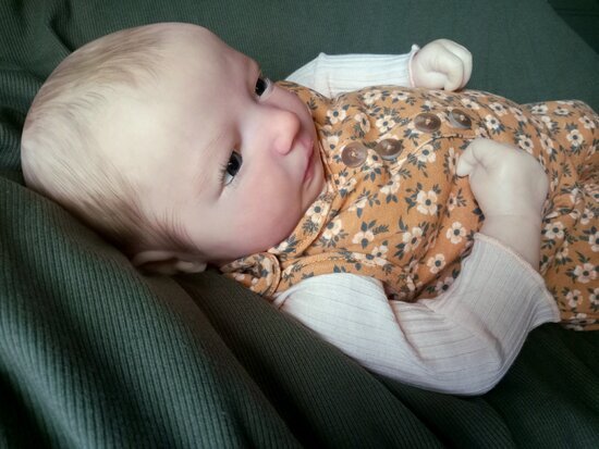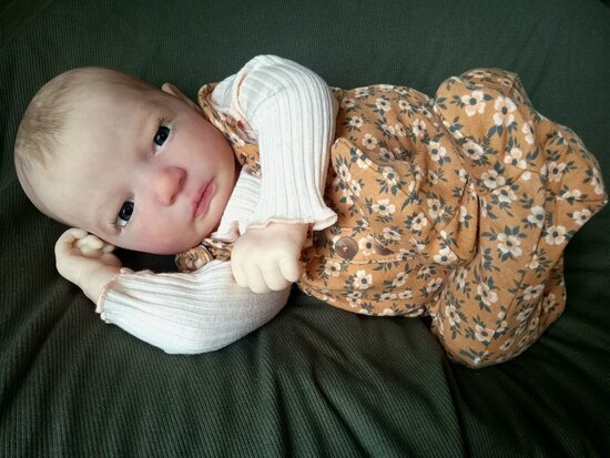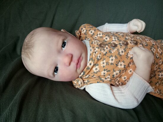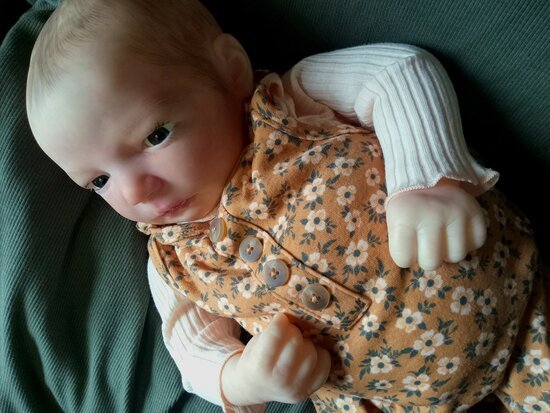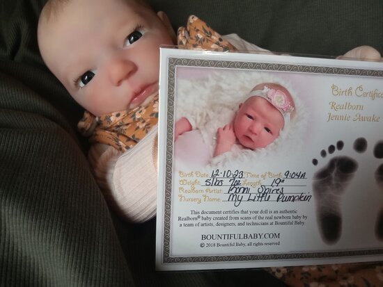 | Artist: Ronni Spires Sculpture by: BB Kit Name: Realborn Jennie Awake Kit Bought From: Bought directly from Bountiful Baby Length: 19″ (48.2 cm) Weight: 5lbs 7oz Certificate Of Authenticity (COA): Yes Head Material: Vinyl Category: Reborn Baby |