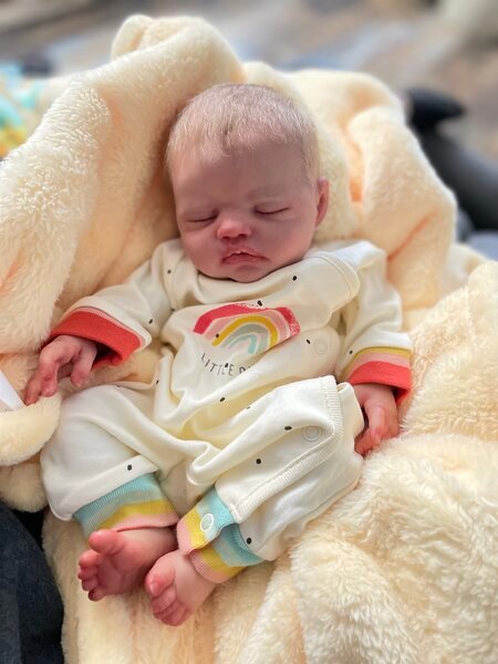 | Artist: Lisa Stone Sculpture by: Melanie Gebhardt Kit Name: Jules Bought From: Jules was a custom order. I purchased straight from the artist Lisa Stone Length: 19″ (48.2 cm) Weight: 5.5 Certificate Of Authenticity (COA): Yes Head Material: Vinyl Category: Reborn Baby |