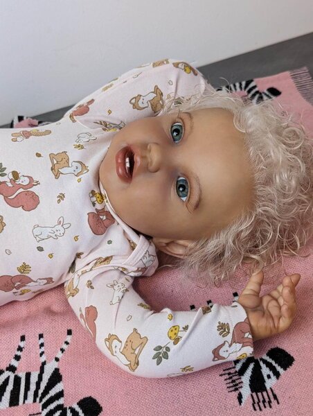 | Artist: April Anjard Sculpture by: Laura Lee Eagles Kit Name: Lottie Kit Bought From: Authentic kit bought from Bebaby in Italy Length: 24″ (60.9 cm) Weight: 8 lbs 5 oz Certificate Of Authenticity (COA): Yes Head Material: Vinyl Category: Reborn Baby |