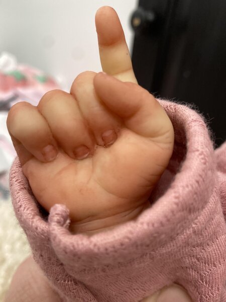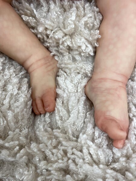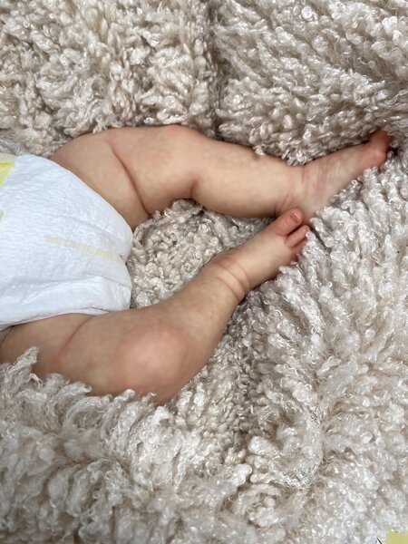 She has full limbs and wears 3 month clothes
