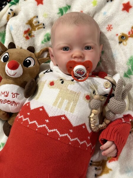 ❤️He comes with a small box opening including his pacifier and pacifier clip, his reindeer outfit, toy and blanket, extra diaper and another outfit.